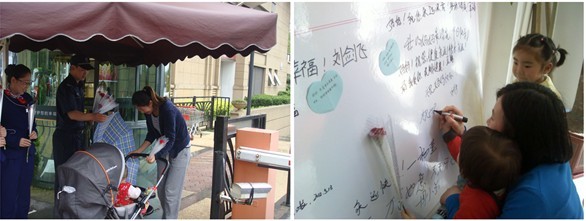 也有老妈妈拿着花和我们的小姑娘聊天,说她孩子都在国外,这是她今天收到的最开心的礼物……