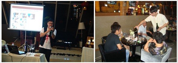 虽然受台风“海葵”余波的影响,外面还淅淅沥沥的下着雨,但是室内的气氛却没有收到丝毫的影响,业主纷纷按照红酒师教导方法来品酒。第一步:将装有酒样的杯子倾斜30度—45度,在光亮白色的背景下观察酒液的颜色;第二步:摇转酒杯,让红酒中的香气物质完全释放出来;第三步:适中饮一口酒,将酒含在口中,做咀嚼吸气动作,反覆于口腔中进行搅动,好让香味散发到整个口腔中;第四步:体会葡萄酒留下来的余香。品酒过程中,每个参加活动的业主看起来都是那么的享受。闭着眼,细细的体会红酒在口中的细微变化!