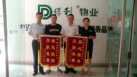 此次煤气中毒事件,由于巡逻安防员及时发现、及时上报、及时处理,未对该商铺人员生命造成重大危害,得到了商铺、及周边业主的高度赞扬。在业主出院观察一周后,又送来一面锦旗向服务中心表达感谢之情。