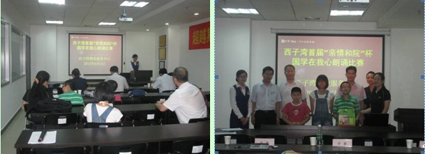 为了弘扬国学精神、建设和谐的社区文化、展示新时代学生的聪明才智,西子湾物业服务中心举办了首届“亲情和院杯国学在我心”朗诵比赛。