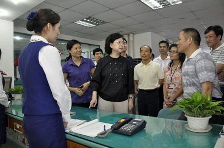 花园物业服务中心,仔细翻看了客服前台的业主报修记录,详细了解业主报修等服务处理流程,当听到服务中心对业主报修实行三级回访,确保业主满意时,王部长连声称赞:“好!做的很好!”