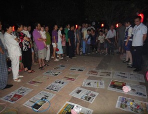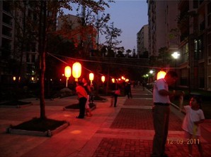 再来看猜灯谜,一会儿功夫,37个灯笼上的灯谜早已不见踪影,只看见活动奖品发放处人头攒动,业主们兴高采烈的和工作人员核对着谜底,猜对了的业主高兴得直跳,领完礼品后又立即投入到另一个谜底的沉思中。