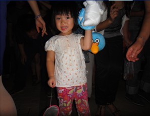 现场活动有三个项目——“捞金鱼”、“套圈圈”、“猜灯谜”;只见捞金鱼现场,小朋友开心的将盆中的金鱼从大盆网到小盆,然后又从小盆网到大盆,有的小一点的小朋友干脆直接用手捞,旁边的家长则一边拍手鼓励,一边说着:“宝宝,真棒。”大人、小孩的脸上均洋溢着幸福的笑容。